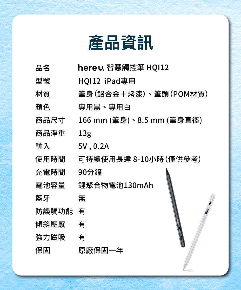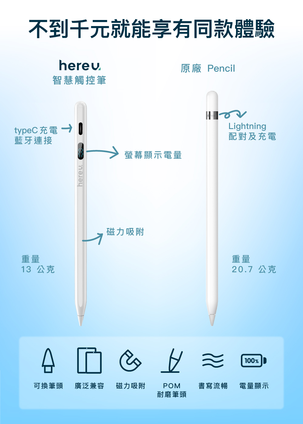 hereu智慧觸控筆 專用款-小資族必備、高CP值首選、即時電量顯示