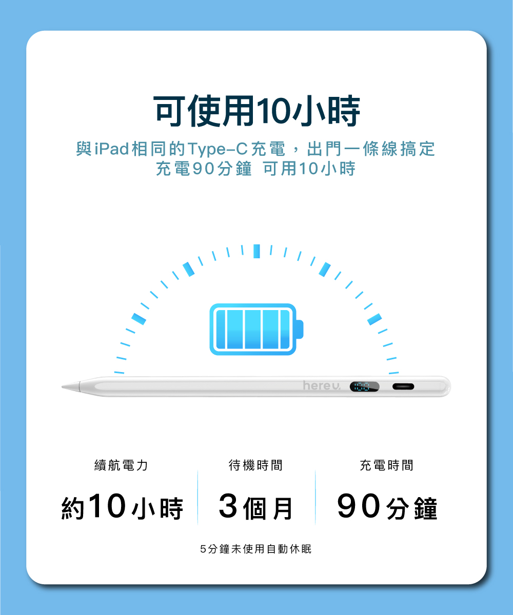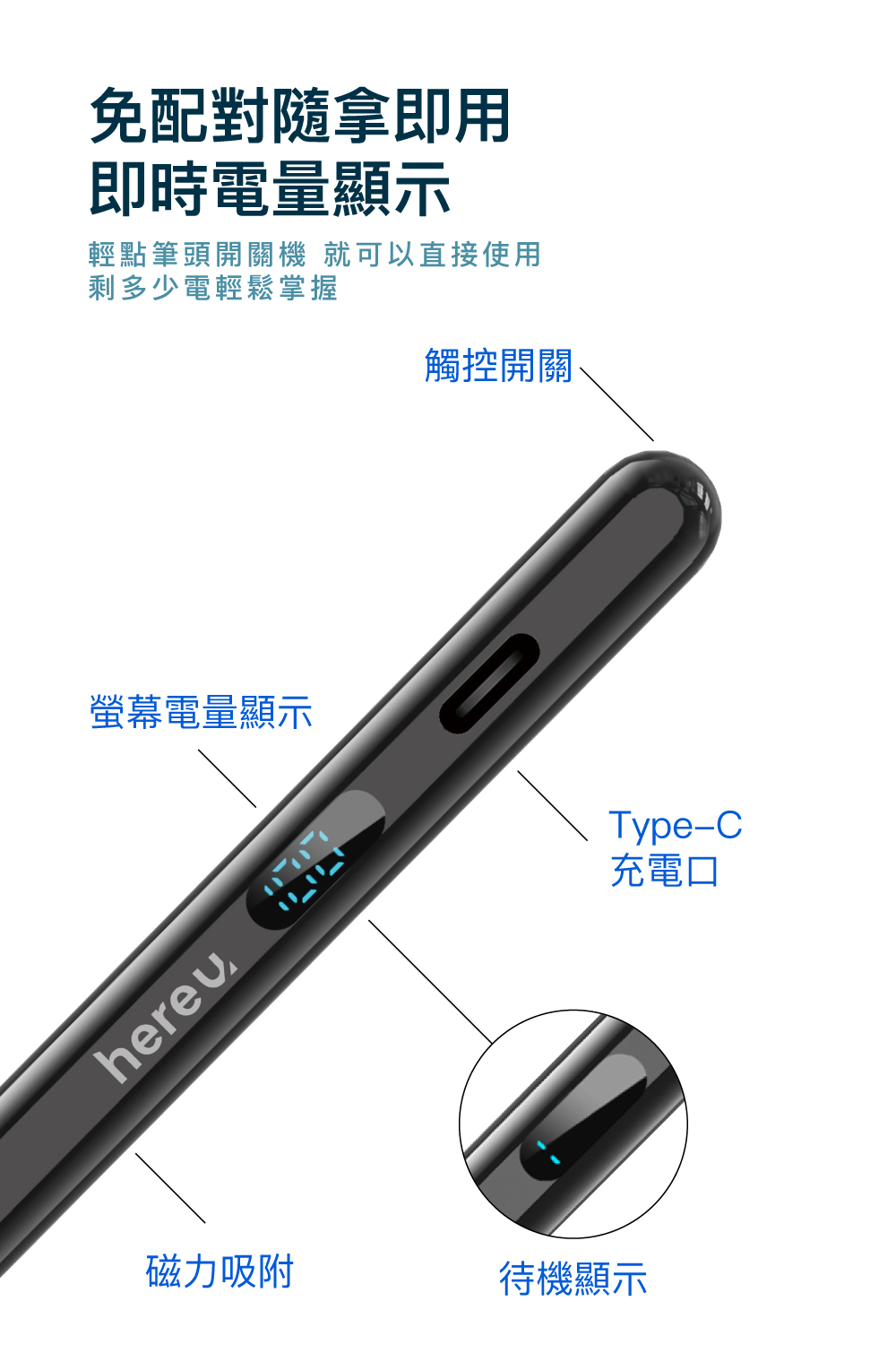 hereu即時電量顯示智慧觸控筆 iPad專用亮點✨